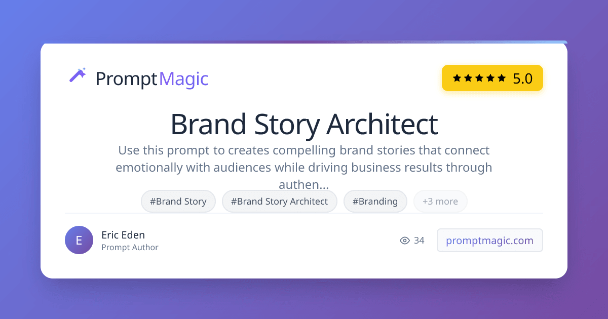 Use this prompt to creates compelling brand stories that connect emotionally with audiences while driving business results through authentic, and memorable narratives. For this prompt to work you must provide great inputs in the 16 areas provided. Consider attaching your company brand guide, company brackground information, linking to company web site About Us page, etc.