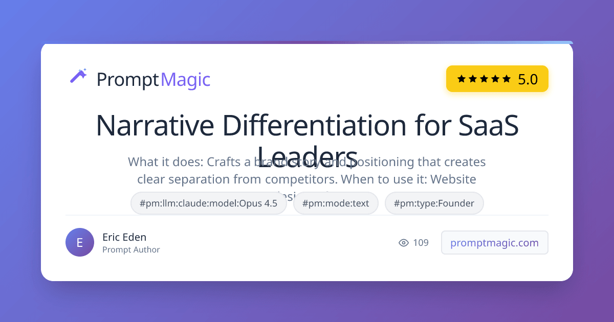 What it does: Crafts a brand story and positioning that creates clear separation from competitors. When to use it: Website redesigns, fundraising prep, sales enablement overhauls, or when you feel like you sound like everyone else.