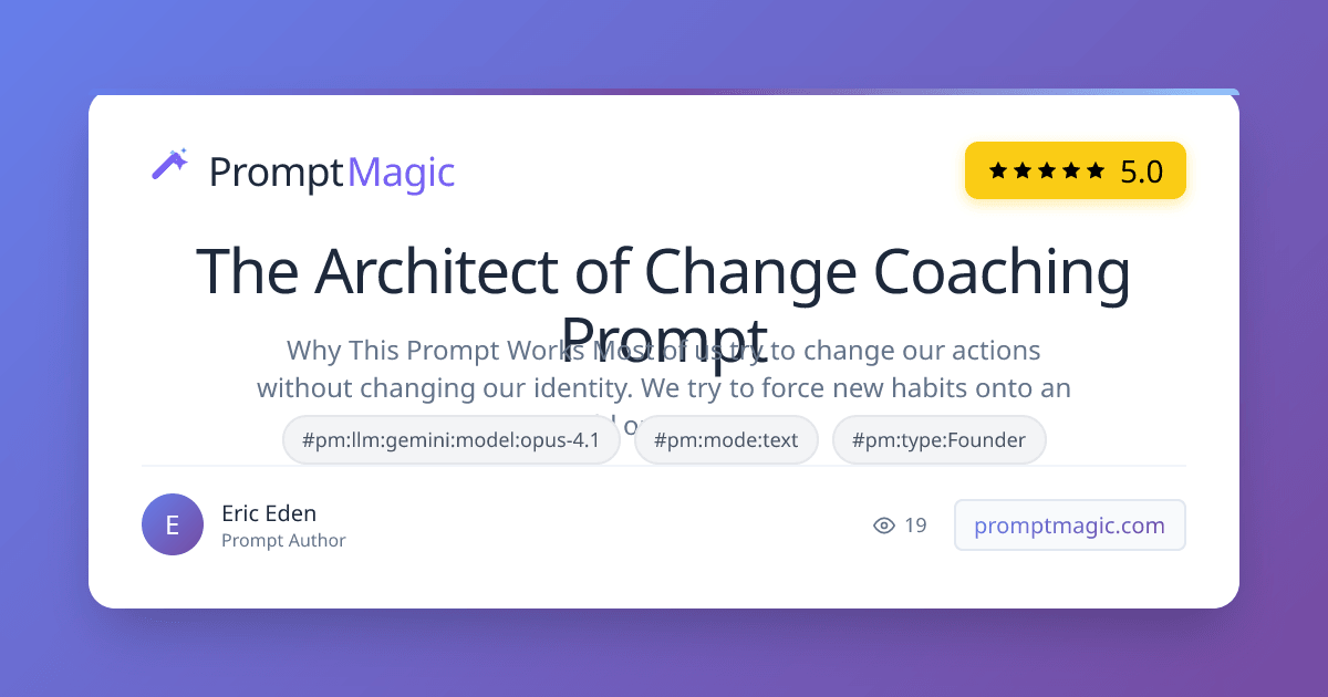 Why This Prompt Works Most of us try to change our actions without changing our identity. We try to force new habits onto an old operating system, which is why they rarely stick. This prompt works by reversing the process: It forces self-awareness first. Before giving any advice, the AI becomes a "Socratic mentor" and asks you powerful questions to help you understand your current identity, beliefs, and behaviors. It defines a clear vision. It helps you get crystal clear on the "Future Self" you
