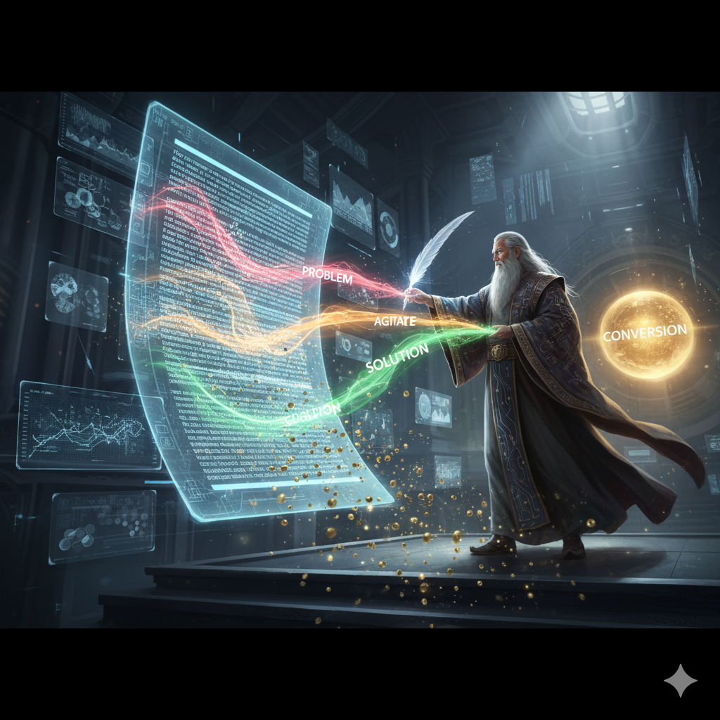 Transforms any draft into a high-converting Problem-Agitate-Solution framework with three intensity variations.